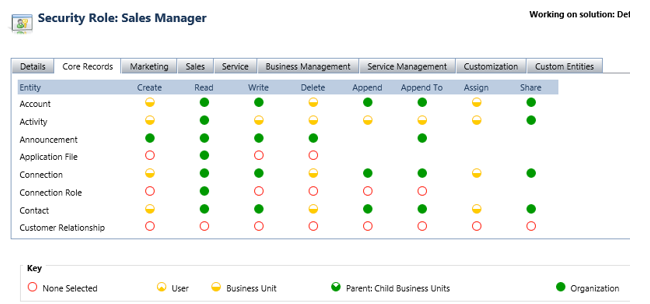 Met zo’n hiërarchisch systeem verloopt het onderhoud van de security van de CRM-gebruikers een pak gemakkelijker omdat de security rechten logisch gegroepeerd zitten. Een security rol stemt in dit geval overeen met de verantwoordelijkheid die iemand heeft. Zo vermijdt u als CRM-beheerder dat u dezelfde rechten meerdere keren in meerdere rollen moet gaan instellen.
