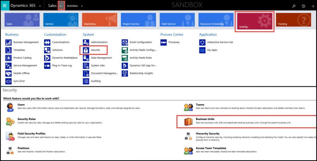 “Business Units” zijn heel effectief om gegevens af te schermen tussen verschillende afdelingen van uw organisatie. Maar denk goed na vooraleer u gebruik maakt van Business Units, want hiermee creëert u een weinig flexibele security structuur.