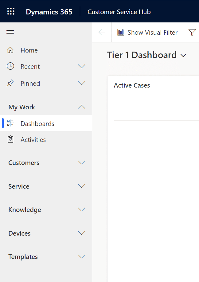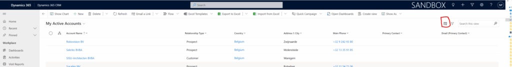 Dit is de verandering die de meeste van onze klanten allicht al vastgesteld hebben en deze is visueel ook heel duidelijk aanwezig. Er staat voortaan een zoekbalk bovenaan het scherm, zodat we snel relevante info kunnen vinden. Zoals de naam al aangeeft, is de zoekfunctie nu uitgebreid naar de hele Dataverse van Microsoft.