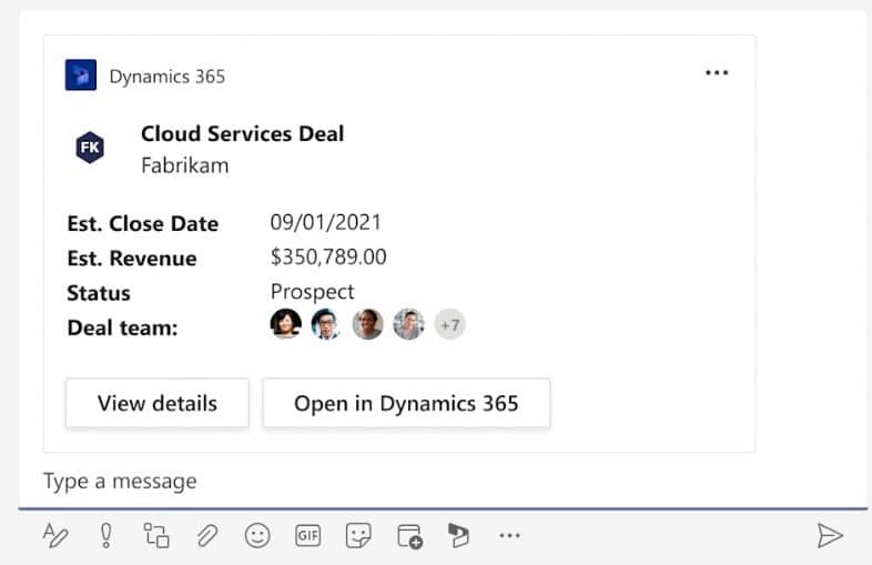Het opzoeken en filteren van records in Dynamics 365 en deze bijgevolg delen in een chat met collega’s en vervolgens de records updaten en eventueel nota’s toevoegen op de tijdlijn, kan allemaal vanuit een Teams-gesprek. Zo moeten uw collega’s niet overschakelen van app tot app.