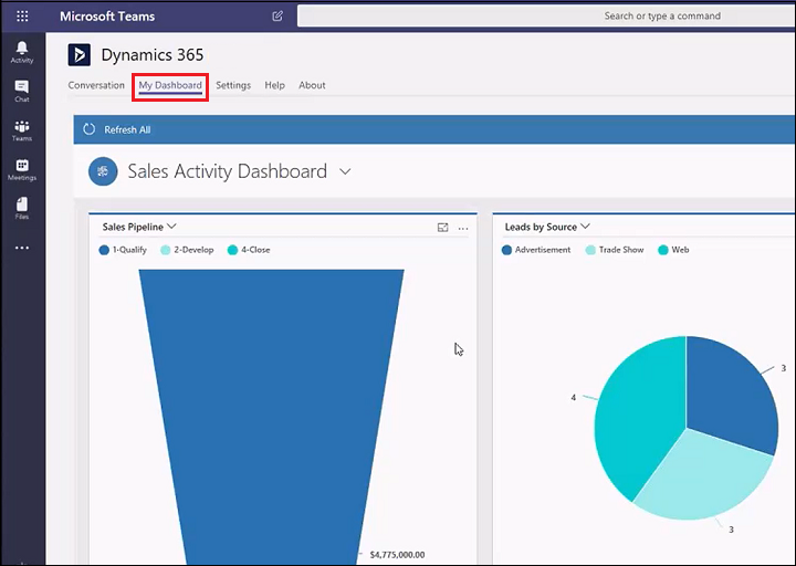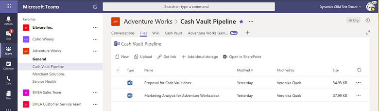 Standaard is de integratie van Microsoft Teams met Dynamics 365 uitgeschakeld in de Common Data Service. Op de Microsoft Docs-site vindt u de instructies om de integratie in te schakelen.