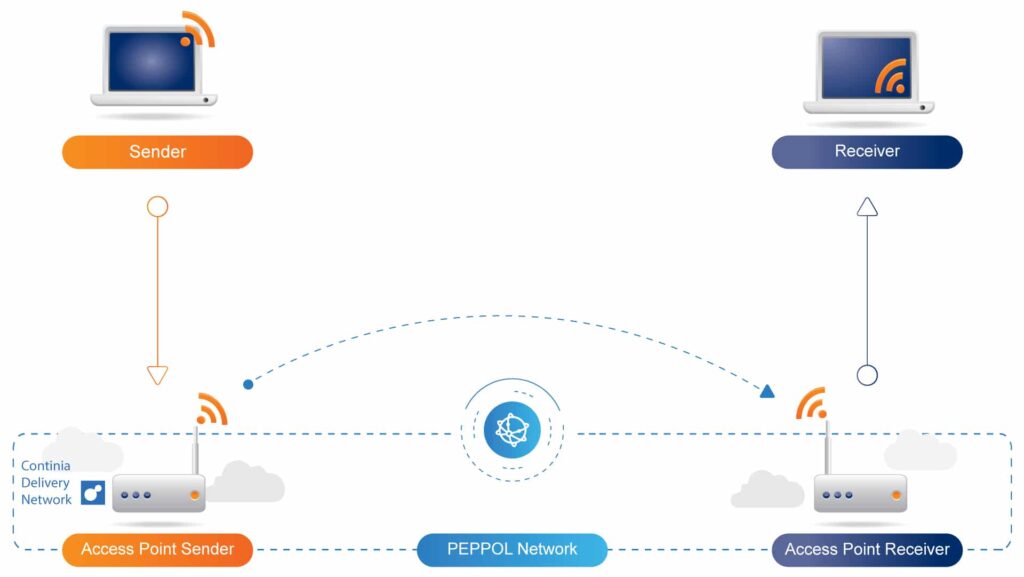 Hiervoor maken we gebruik van het Continia Delivery Network (ingebouwd in Continia Document Capture en Output), waardoor u veilig elektronische facturen kunt uitwisselen via het Peppol eDelivery Network.