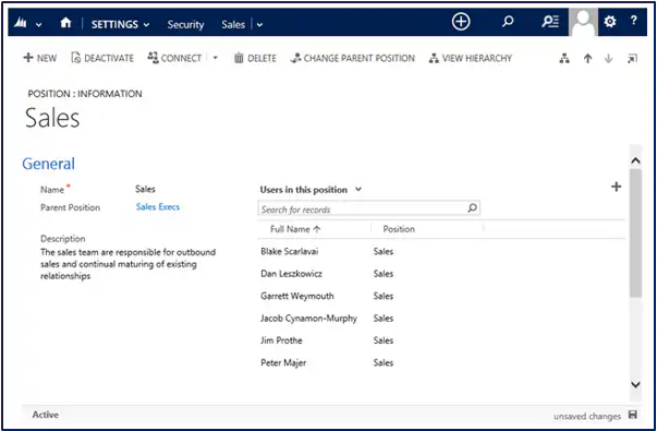 Verder kan u nu ook posities (functie) definiëren en gebruikers toewijzen aan een bepaalde positie. Hiermee kan u een volledig hiërarchisch gestructureerd security model opzetten.