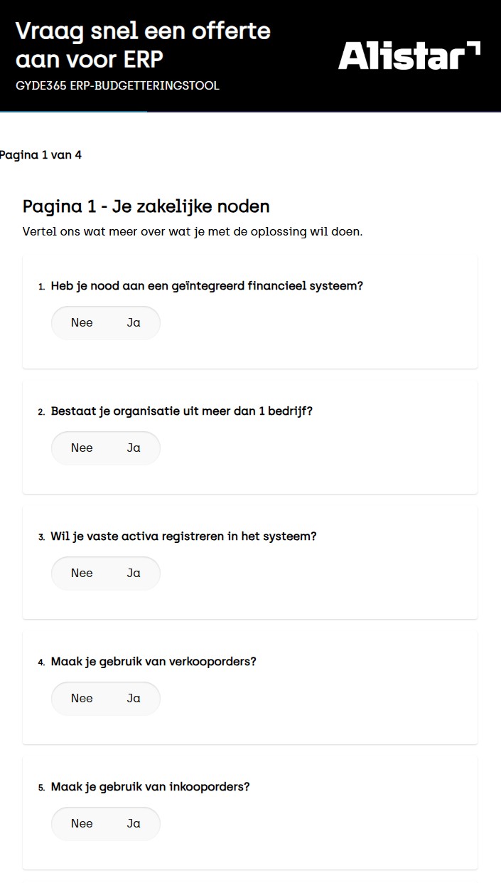 Ontvang volledig geautomatiseerd een betrouwbare schatting op basis van onze honderden implementaties. Geschikt voor zowel eenvoudige als complexe projecten. Na enkele kliks ontvang je een budget-indicatie in je mailbox.