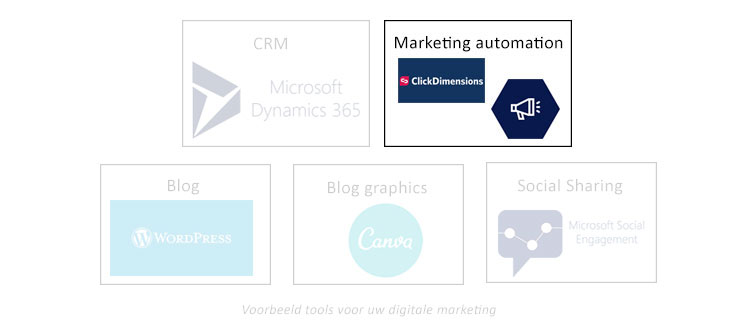 2 voorbeelden van marketing automation tools die naadloos integreren met Microsoft Dynamics 365 zijn ClickDimensions en Dynamics 365 voor Marketing.