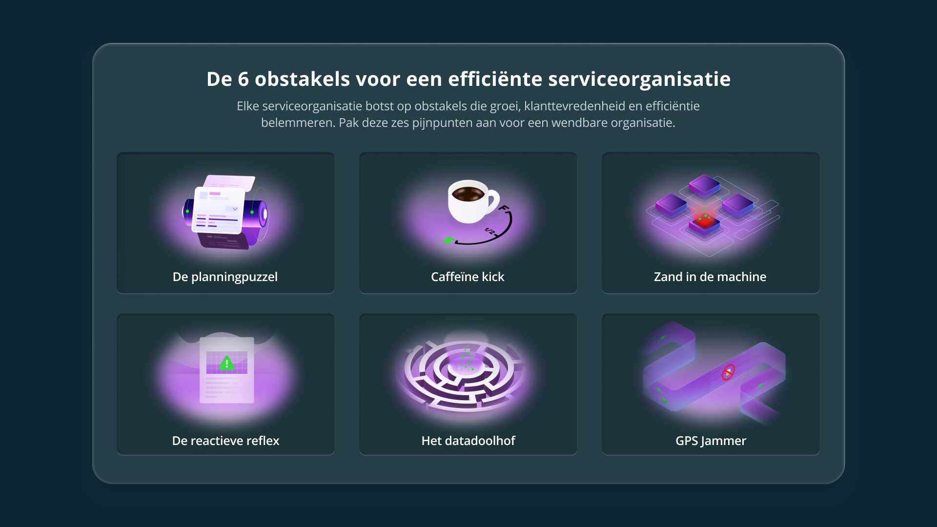 In een wereld waarin data sneller aangroeit dan ooit, is het een heuse uitdaging voor medewerkers om hun weg te vinden in het doolhof van applicaties, systemen en informatiebronnen om zo de klant optimaal te bedienen. Moderne customer- en field service management oplossingen brengen alle belangrijke data en processen bij elkaar.
