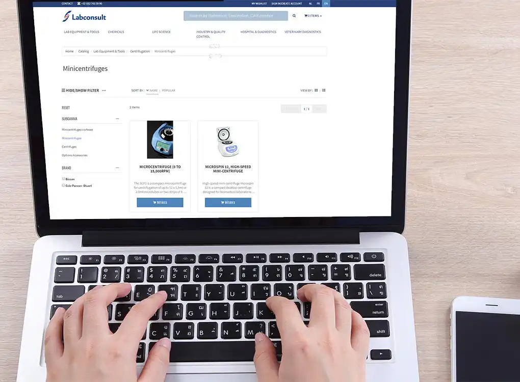 De online catalogus kan een op zichzelf staande oplossing zijn of geïntegreerd worden in een bestaande website. Alle productinformatie wordt rechtstreeks uit het ERP-systeem ingelezen.