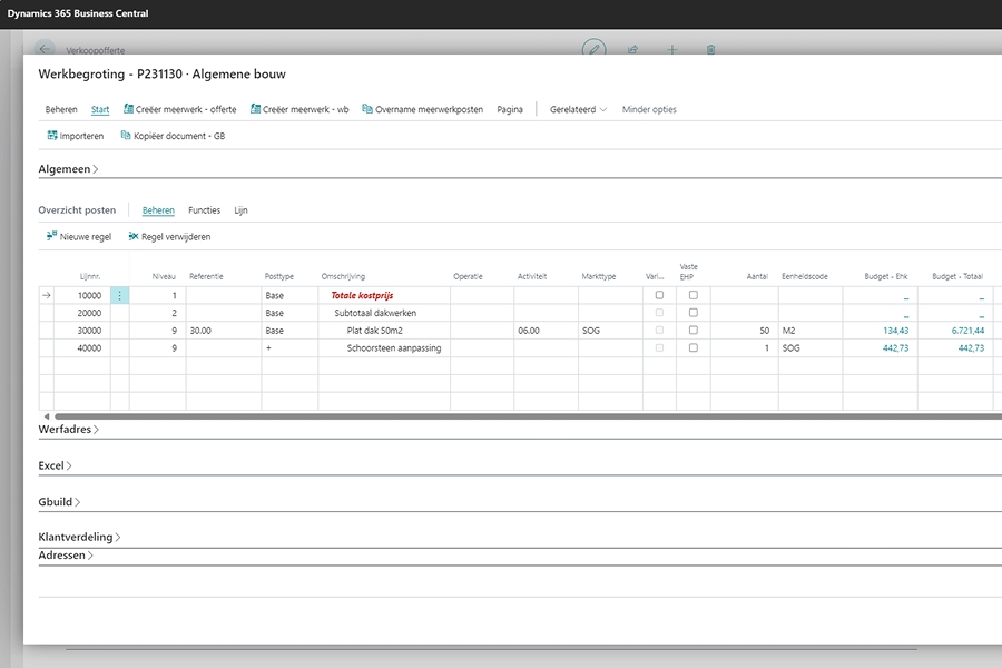 Met Gbuild werk je in één geïntegreerde Microsoft-omgeving waarin al je bouwprocessen samenkomen. Van voorcalculatie en planning tot uitvoering, rapportering en e-facturatie.