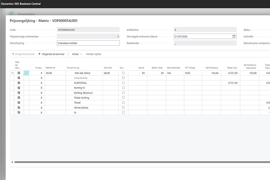 Genereer standaard kostprijsberekeningen, maak prijsvergelijkingen en creëer automatisch inkoopdocumenten op basis van prijsaanvragen.